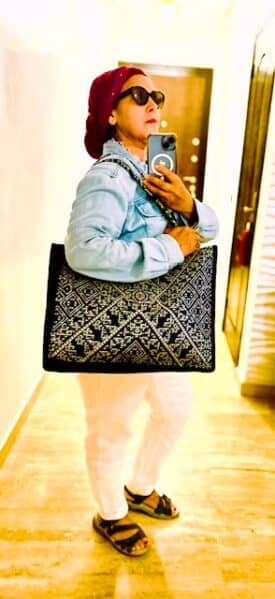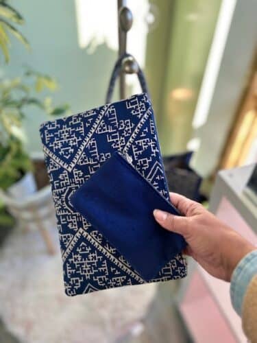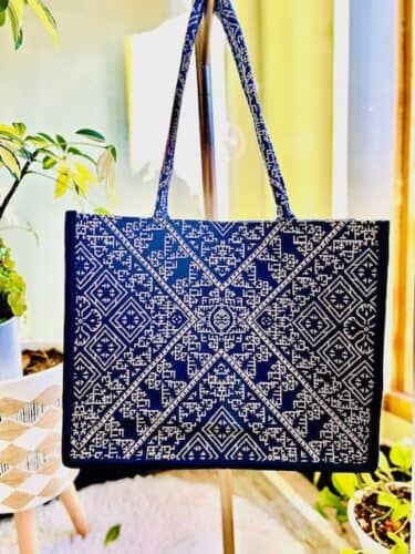 Handcrafted by skilled artisans in Marrakech, Morocco, this stunning tote was inspired by a vibrant blue velvet fabric discovered in Casablanca. Designed with care and collaboration, it’s a stylish and spacious companion for your travels or everyday needs.