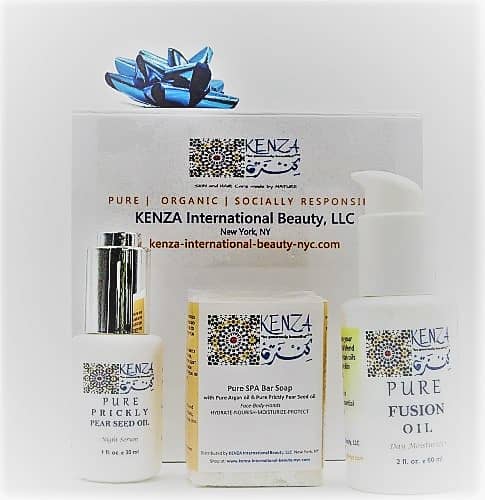 This beauty Kit is the perfect natural skincare treatment with only two Organic* Moroccan oils: Argan oil and Prickly Pear Seed Oil, that will deeply moisturize, brighten, nourish and leave a healthy glow on the skin. It includes KENZA Pure Prickly Pear Seed Oil, KENZA Pure Fusion Oil & KENZA Pure SPA Bar Soap.